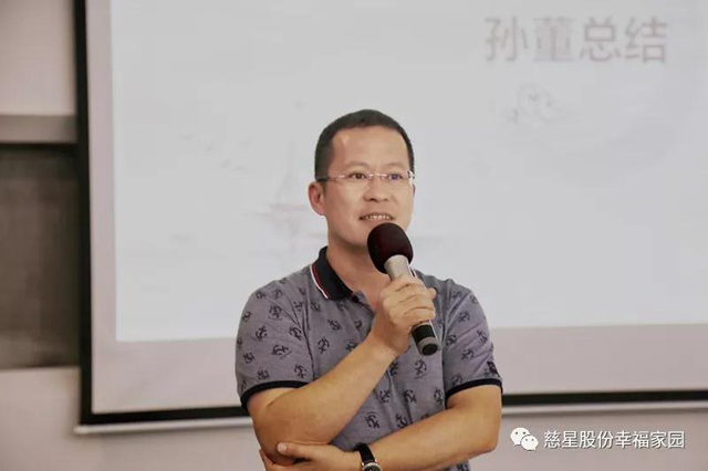 最后再次感谢孙董给我们创造这么好的工作环境,有自助餐厅、生日宴会、健身房、瑜伽室让我们感受到一家人的温暖,希望慈星越来越好,感恩有你们。