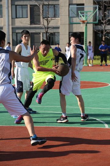 经过历时大半个月的激烈角逐,最终制造部总装和制造部调试在总决赛顺利会师,于9月21日下午展开了冠军争夺战。运动员们在场下是亲密无间的同事,在球场上却是你争我赶,不放过任何一个得分的机会。左晃,右突,转身,过人,起跳,钩手,球进了!只见场上队员时而转身跳投,时而三分远投,他们身行矫健,动作挥洒自如,成为一道亮丽的风景线。半场结束,制造部总装带着3分的优势进入中场休息。中场的休息时间,举行了看点十足的三分球大赛。一直相传事坦格有个“三分王”章禹,足足提高了大家的期待感。无奈在比赛中,章禹状态不佳,以15中2遗憾败北。反倒是同队的滕迪,自信沉着,表现出色,最终拿下了这个含金量十足的“三分王”。