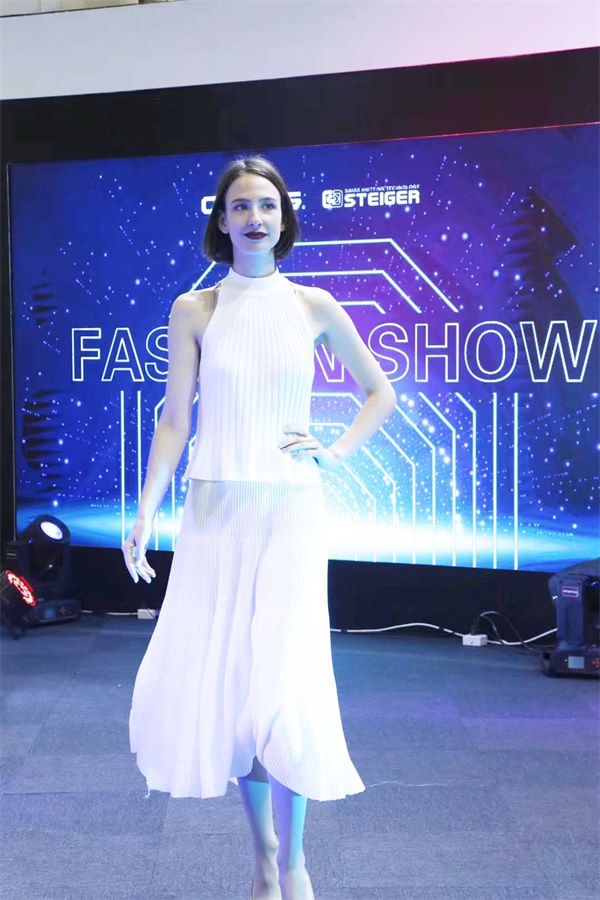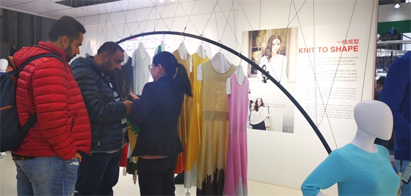展会期间,慈星股份除了展示令人惊艳的创新产品,大气美观、极具时尚感的展会设计吸引了大批客户前来观展。开展首日,慈星KNIT TO SHAPE针织发布走秀更让在场观众大饱眼福靓丽的模特身穿有慈星股份KNIT TO SHAPE一线电脑横机编织的连衣裙、外套、长裤无一不透露出舒适时尚、舒适的气息高领、V领圆领,每一件都匠心独具,现代摩登嵌花、衬纬、镂空等特殊组织花型无不显示了慈星电脑横机编织技术的高超前沿