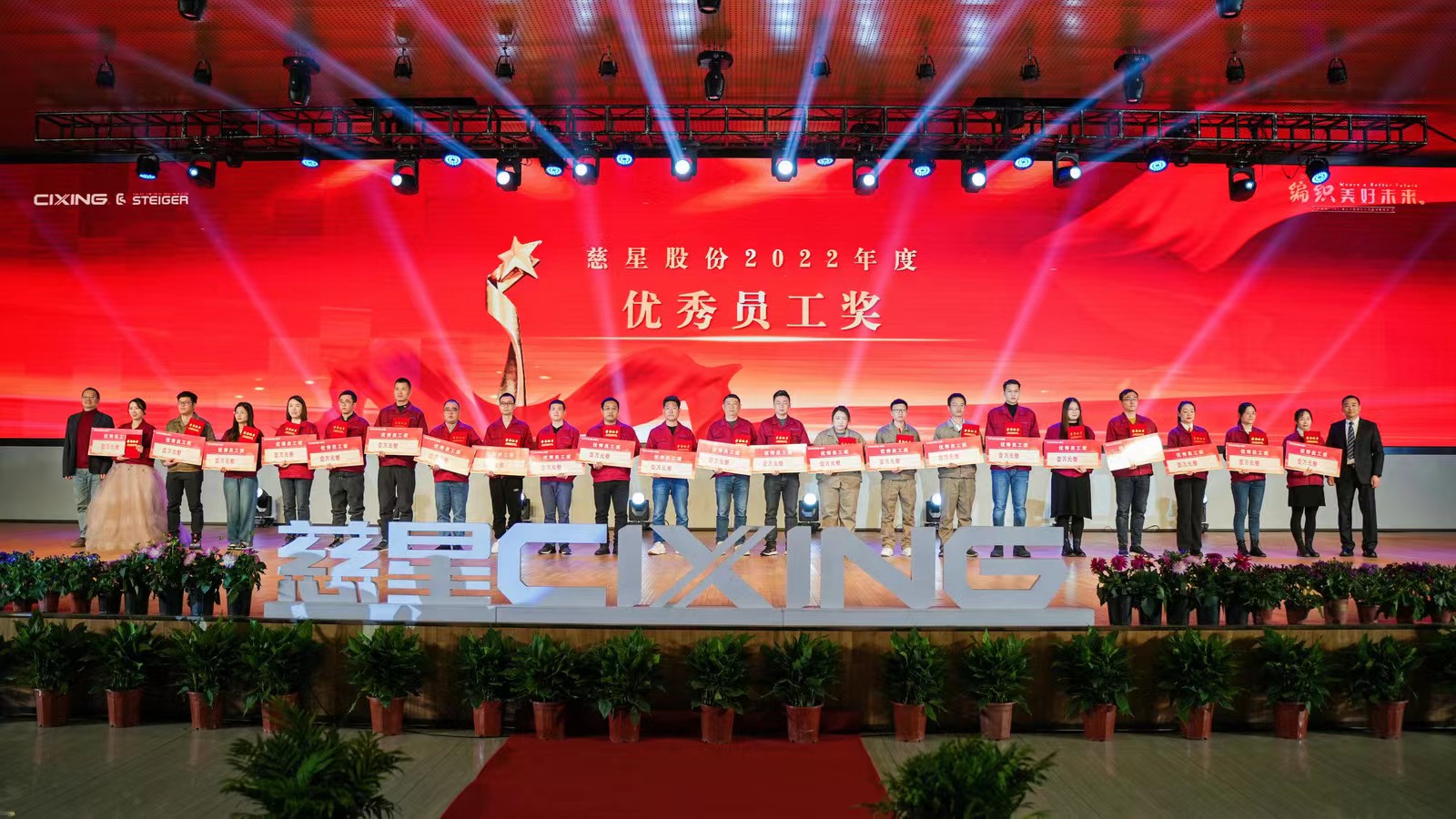 公司能够取得今天的成绩离不开每一位慈星家人的兢兢业业,勤勤恳恳。最先颁发的是了优秀员工奖,24名员工荣获了优秀员工奖的荣誉,在过去的一年,他们坚守岗位,认真负责,严谨细致,用心主动,为所有的员工树立了模范榜样作用。